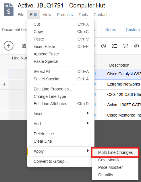 Applying Cost, Price Modifiers or Quantities to Multiple Line Items