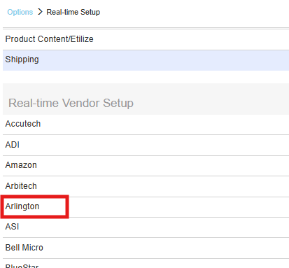 1. To setup Arlington Real-time pricing and availability navigate to Setup > Options > Real-time and select Arlington.