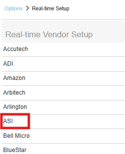 1. To setup ASI Real-time pricing and availability navigate to Setup > Options > Real-time and select ASI.