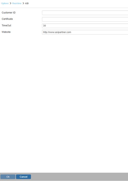 2. Input your Customer ID, Certificate, TimeOut, and website and click [OK].