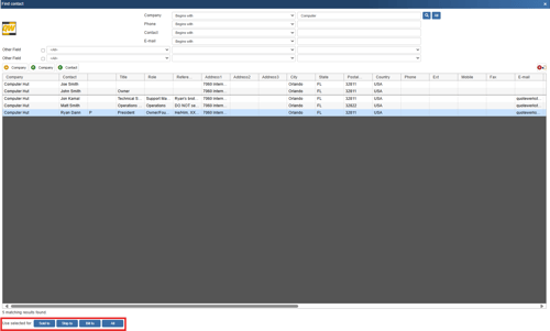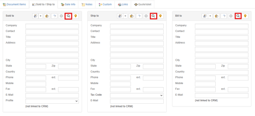 Once you have located the contact you would like to add to the quote select them and click on Sold to to add them to Sold To, Ship to to add them to Ship To, Bill to to add them to Bill To, or All to add them to all three fields at once.