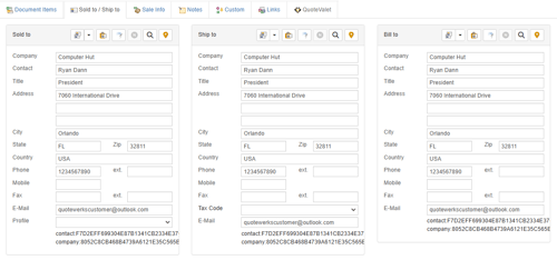Sold to/Ship to tab: