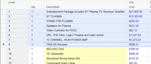 NOTE: When you have the last row of a quote selected and you press the down arrow cursor key on your keyboard, a new blank line item will be added to the bottom of the quote.