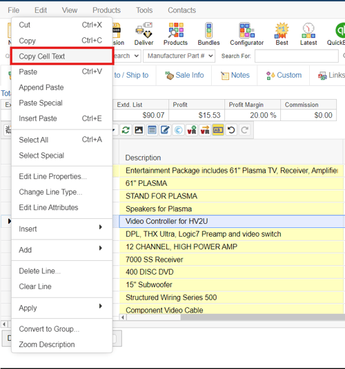 Once an item is added to a quote, almost any aspect of the line item can be modified directly in the quote simply by placing your cursor in the line and typing your changes — the same way you added the initial information.