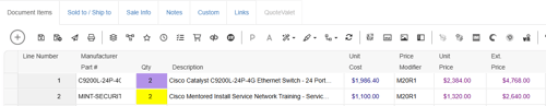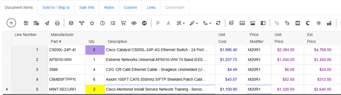 You can set a line item's quantity manually in the Qty column under the Document Items Tab of the Quote Workbook. Simply type in the quantity or use shortcuts such as "++5" to add 5 to the quantity. Similarly, "--5" will subtract 5 from the quantity, "*5" would multiple 5 to the quantity. You can also increase it by percentage by using the shortcut of "++5%" to add 5% to the quantity.
