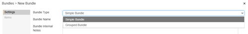 On the Settings tab, select whether you would like to create a Simple or Grouped Bundle: