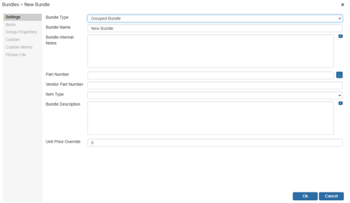 The Custom and Custom Memo Tabs for the Bundles provide an easy way to add additional information about the bundle or items on the bundle. This lets you provide more details about what you are quoting out to the customer and is included on the header line of the bundle.