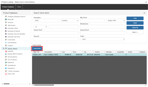 Items from Etilize can be used in Bundles by searching for the items in Etilize or selecting them from the "My Favorites" folder underneath the Etilize Search. When adding items to a Bundle from Etilize, it is important to select the vendor first before adding the item to the bundle. If the vendor is not selected, QuoteWerks will automatically use the first vendor available for that item when it's added from the bundle. Additionally, the Real-time pricing and availability will be updated for the item when it is added to the document.