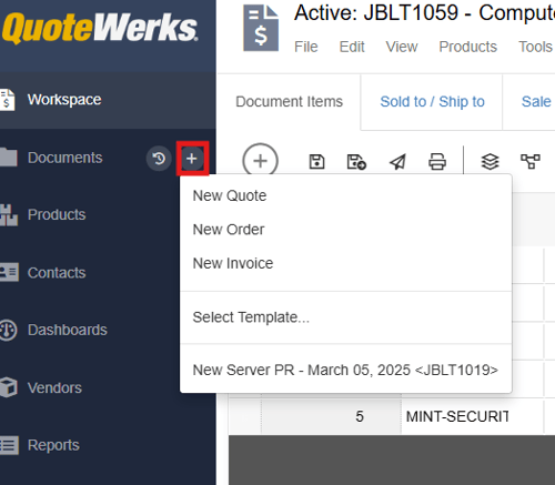 Select the File -> New menu or click on the Plus button next to Documents on the Navigation Panel and Choose "Select Template." Both options will open the New Document Details window.