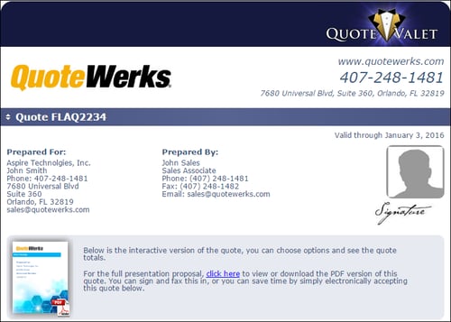 Sales reps can also include their electronic signature to the quote and have it uploaded to QuoteValet to add a personal touch.