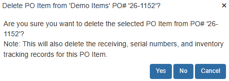 Deleting an item from a purchase order is commonly used for when you create a manual purchase order for a vendor, include two items on it, and then find out that the distributor requires that both items cannot be on the same purchase order. You can use it for any reason you wish, however.