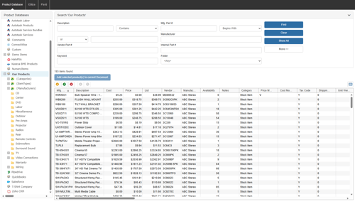 When one of the automatically created manufacturer folders is clicked on, QuoteWerks dynamically queries the database for a list of all the products that are made by the selected manufacturer.