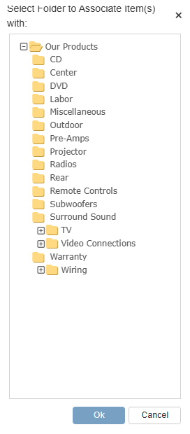 This will then open the Select Folder to Associate Item(s) with window. From here you can select which folder you want to associate the selected items with in the database.