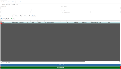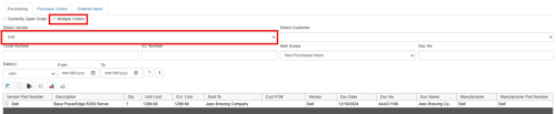 2. On the purchasing tab, select multiple orders, then Dell from the Select Vendor drop down list.