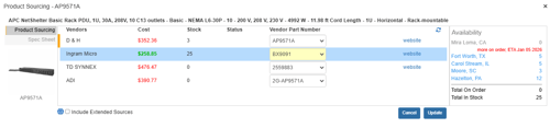 icon will load the Product Sourcing Panel so users can update prices and check stock before ordering to make sure they are sourcing it from the best vendor.