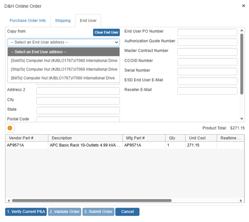 End User PO Number: Specify a PO number for the end user. This is not a require field.