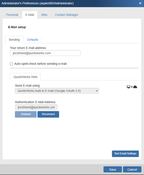 3. QuoteWerks' Built-in Email (Google OAuth 2.0)