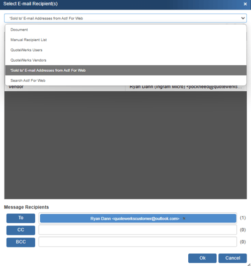 This will be a list of all email addresses associated with the ACT! for Web contact record that is linked to the Sold To fields in QuoteWerks.