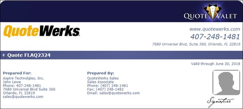If using the sales rep picture or signature with QuoteValet the optimum picture size for these two fields are 120x180 pixels for the Sales Rep Picture and 120x50 pixels for the Sales Rep Signature.