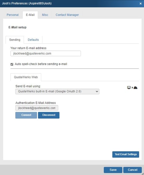 QuoteWerks' Built-in Email (Google OAuth 2.0)