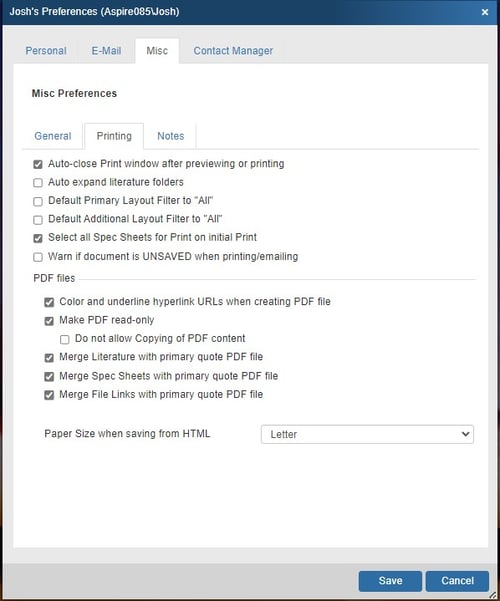 When this option is checked a warning message will notify the user that the current open quote that is trying to be emailed or printed has not been saved in QuoteWerks yet.