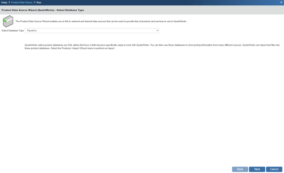 3. Select the product source you would like to use using the Select Database Type dropdown menu and click Next.