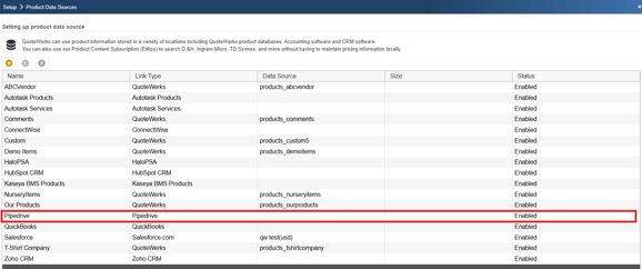 1. Many CRMs allow for you to pull products in from their product lists to be included on quotes. To set this connection up, navigate to Setup -> Product Data Sources.