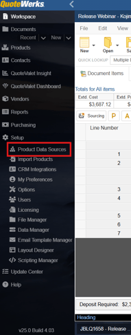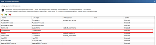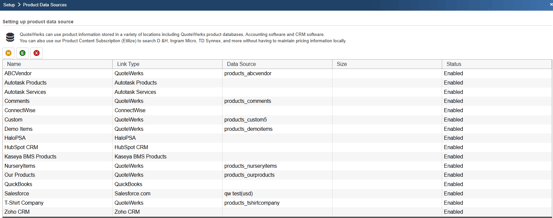 1. Many PSAs allow for you to pull products in from their product lists to be included on quotes. To set this connection up, navigate to Setup -> Product Data Sources.