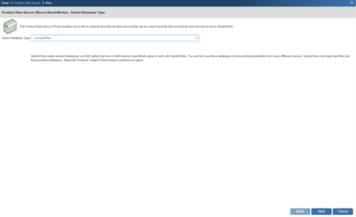 3. Select the product source you would like to use using the Select Database Type dropdown menu and click Next.
