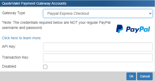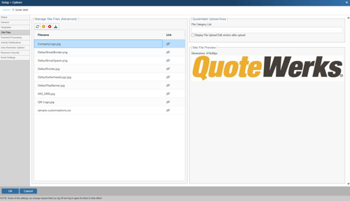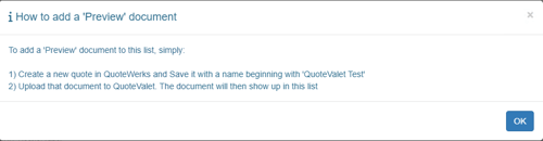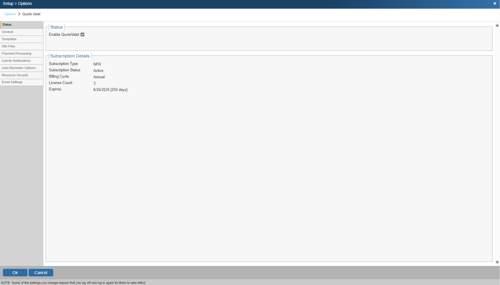 After all changes have been made, click the [OK] button on the QuoteValet Setup window and close out of the QuoteValet tab.