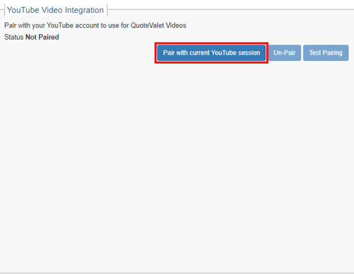 5. Your YouTube credentials should now be paired with QuoteWerks. You can now test the pairing on the setup screen in QuoteValet to ensure it is working: