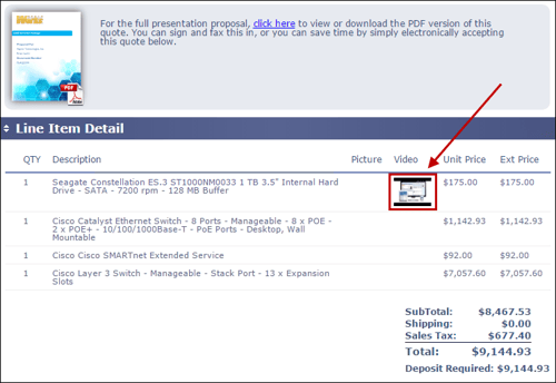 In addition to document video support, users can also assign videos to specific line items in the document. Line-Item Videos can be added on the fly or set as a default for a line item via the Product Database.