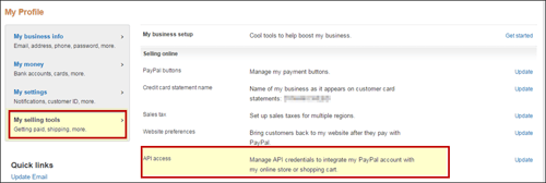 3. Click on My Selling Tools -> API Access ('Update' Link on right)