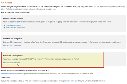 4. Under NVP/SOAP API Integration, select "Request API credentials".