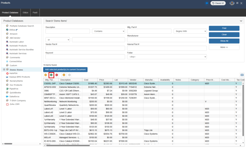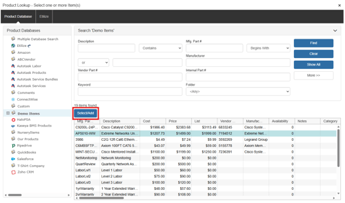 The drop-down menu will display a list of item databases that have been setup in QuoteWerks. Here you can choose where to source this item from the available databases.