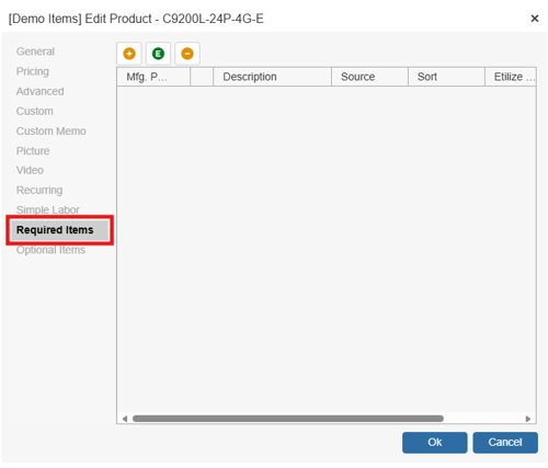 2. In the Edit Product window select the Required Items tab.