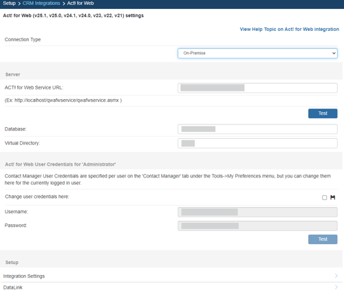 This article covers the following areas of the Act! for Web integration setup: