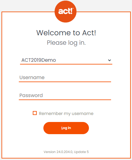 Enter your Act! Database Name. This is the name displayed when you first log into your Act! for Web through a browser.