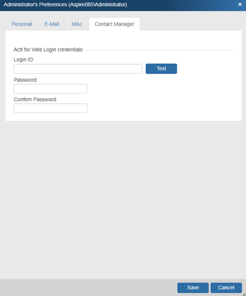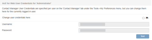 QuoteWerks also needs your Act! Username and Password to log into and integrate with Act!. Enter these credentials, click the Test button to verify them, then click the