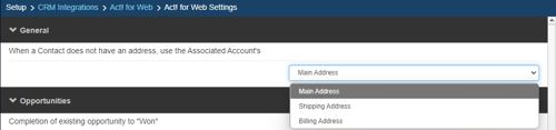 Here you can specify which address to use when a Contact does not have their own address. These addresses are populated from Act! for Web.
