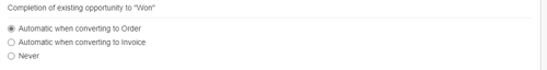 QuoteWerks provides you with the flexibility to control when a sales opportunity created by QuoteWerks in ACT! for Web will be converted to a completed sale. The ACT! for Web sales opportunity can be completed by QuoteWerks when converting to an order (File -> Convert to Order menu), an invoice (File -> Convert to Invoice menu), or Never. Never means QuoteWerks will never attempt to complete the Opportunity, the Opportunity will need to be manually updated within ACT! for Web. This provides a greater level of control for sales managers or administrators who would prefer to manually close the opportunities from within ACT! for Web rather than have QuoteWerks automatically close them.