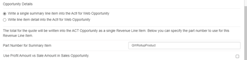 If you select this option, QuoteWerks will write a single summary line item with just the totals into the ACT! for Web Opportunity.