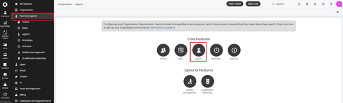 3. At the top of the menu on the left select Teams & Agents then select Agents.