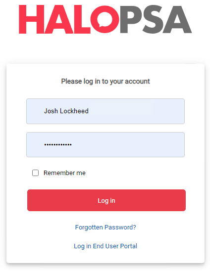 1. Navigate to your HaloPSA custom URL and login using your credentials.