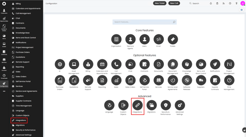 3. Scroll to the bottom of the menu on the left and click on Integrations OR click on the Integrations icon under Advanced.