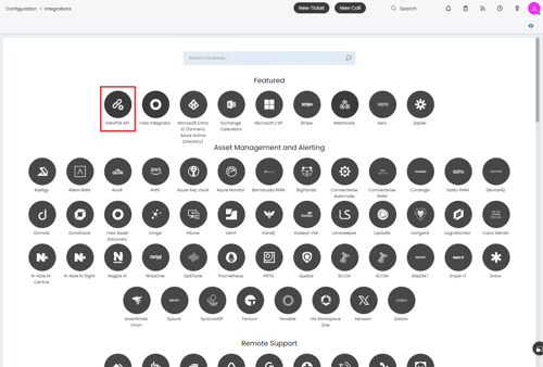 3. Click on Integration Settings to open the Halo PSA Setup Window.
