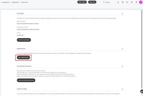 With the API-only Agent created you can now create a new application API which will get you access to the credentials needed to establish a connection to HaloPSA.