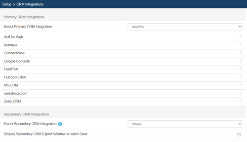 2. Select Halo PSA from the list of Contact Manager Integrations.