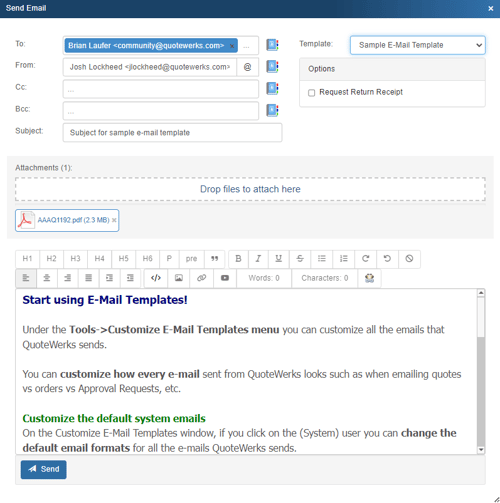 Additionally, the email can be resent to the customer at any time from the QuoteValet Tab of the document or from the Open Document window by right-clicking on the document.