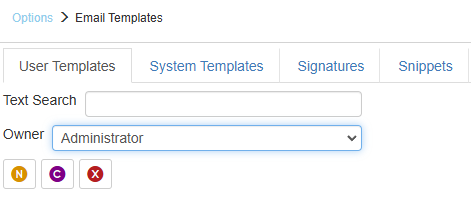 To create a new template, first choose the “Owner” from the drop down list of where you want to create the new, blank template. This is going to create the new template under that user. Click the